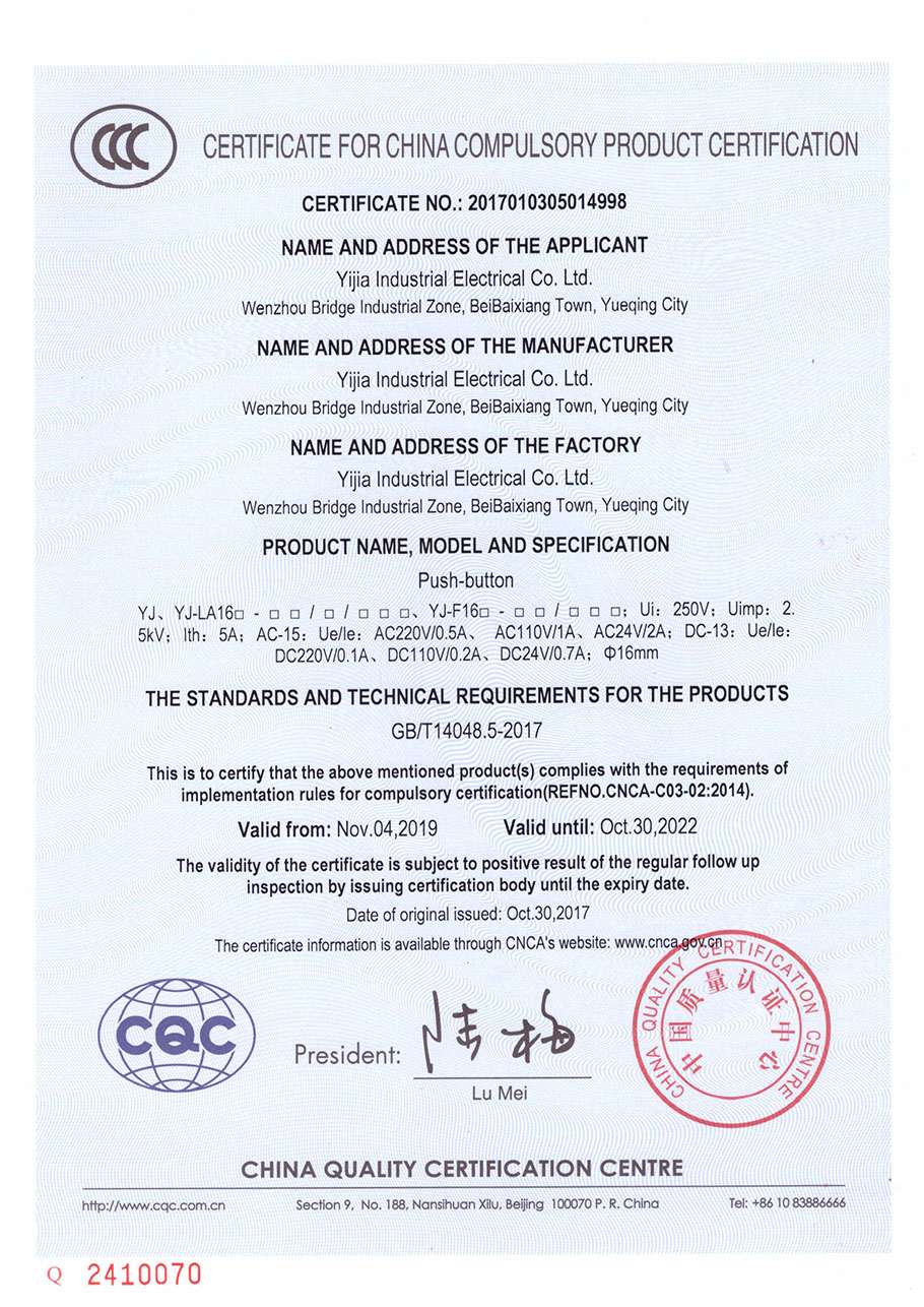 CCC Certificate-Plastic Button Switch