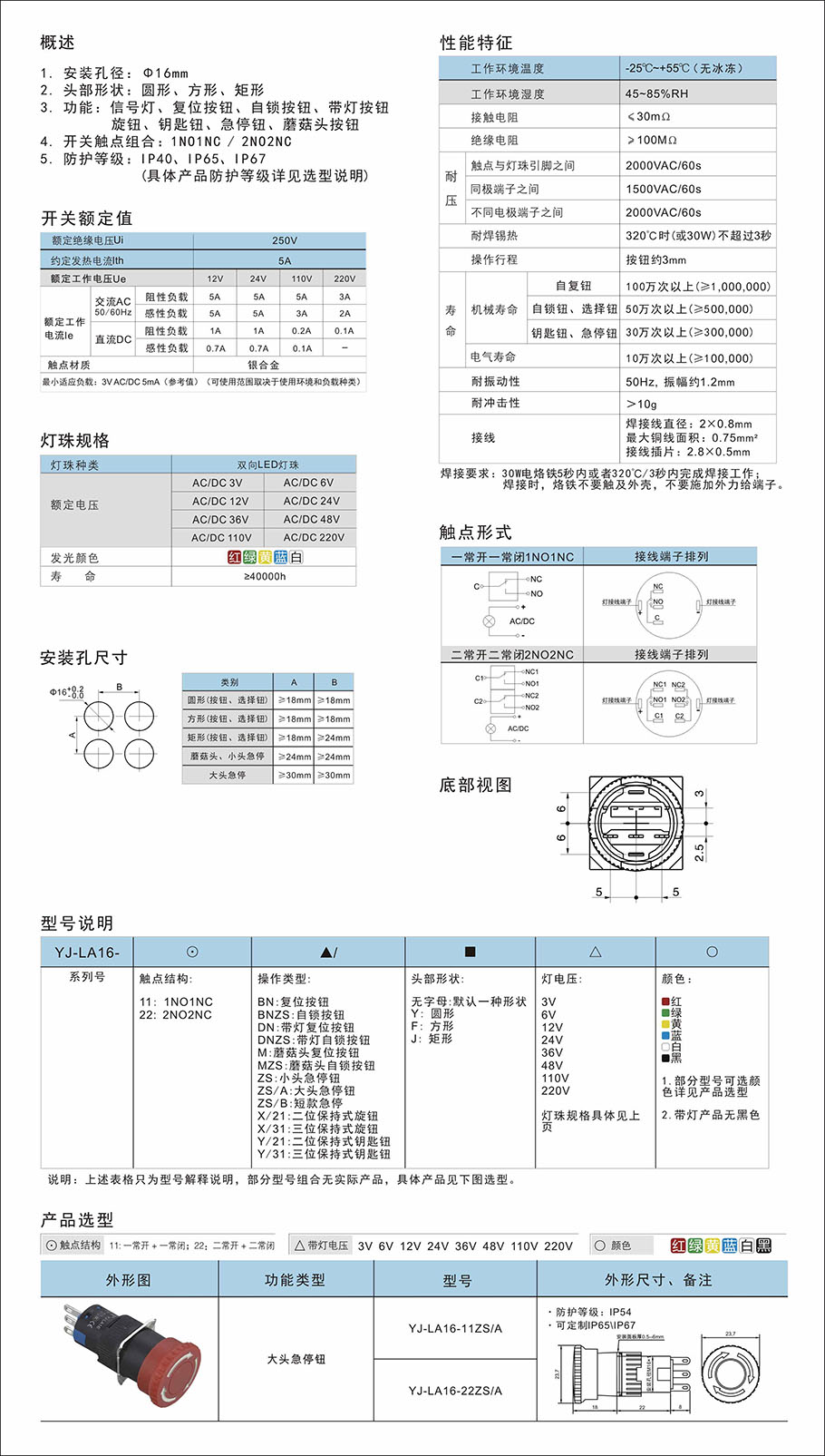 1. 作用:防止誤操作 2. 適用產(chǎn)品:YJ-LA16和YJ-F16系列的圓形和正方形按鈕