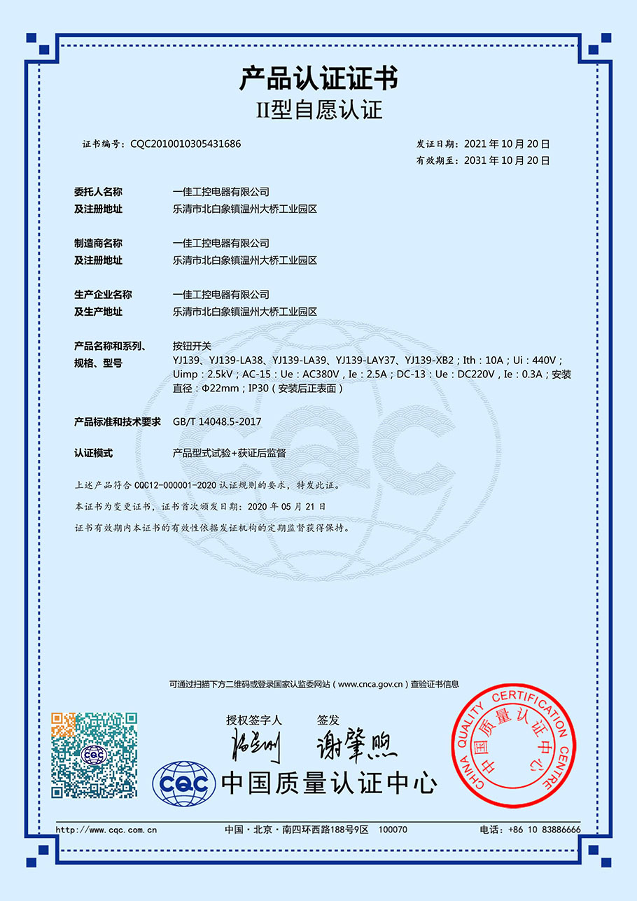 | CQC證書-按鈕開關YJ139 |