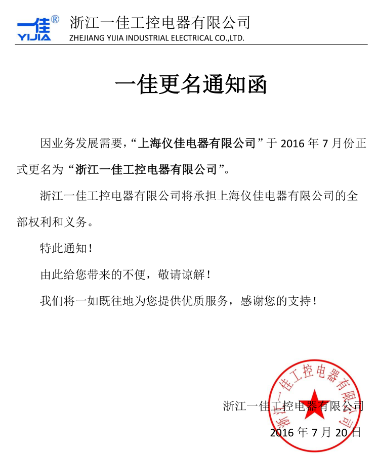 公司名稱變更通知函