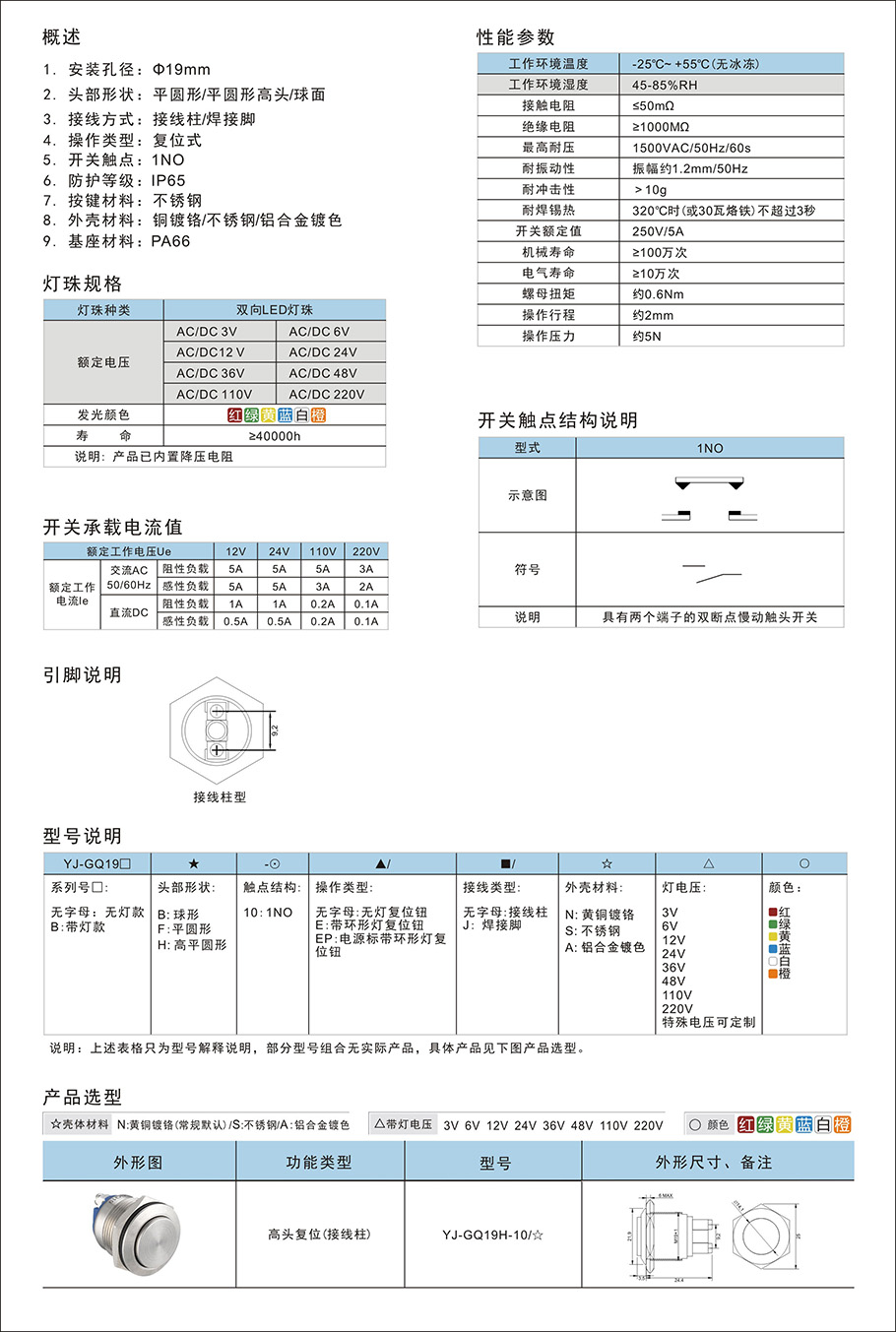 Φ19高頭自復(fù)位(接線柱)