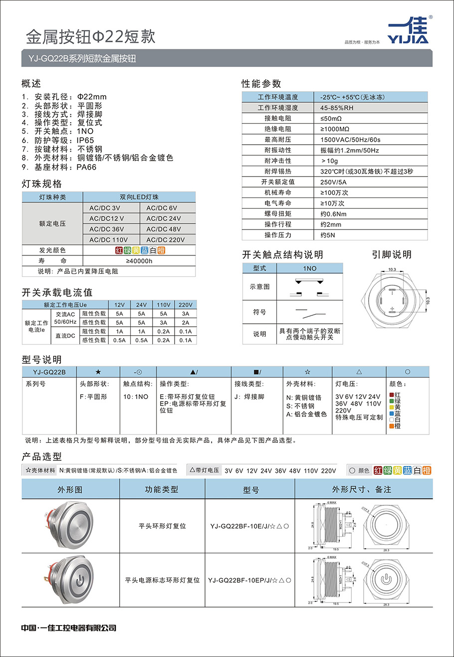 1. 作用:防止誤操作 2. 適用產品:YJ-LA16和YJ-F16系列的圓形和正方形按鈕