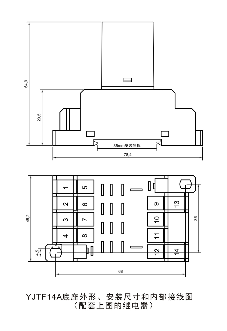 大功率4組繼電器底座(大14腳)YJTF14A(配套YJ4N-LY繼電器)