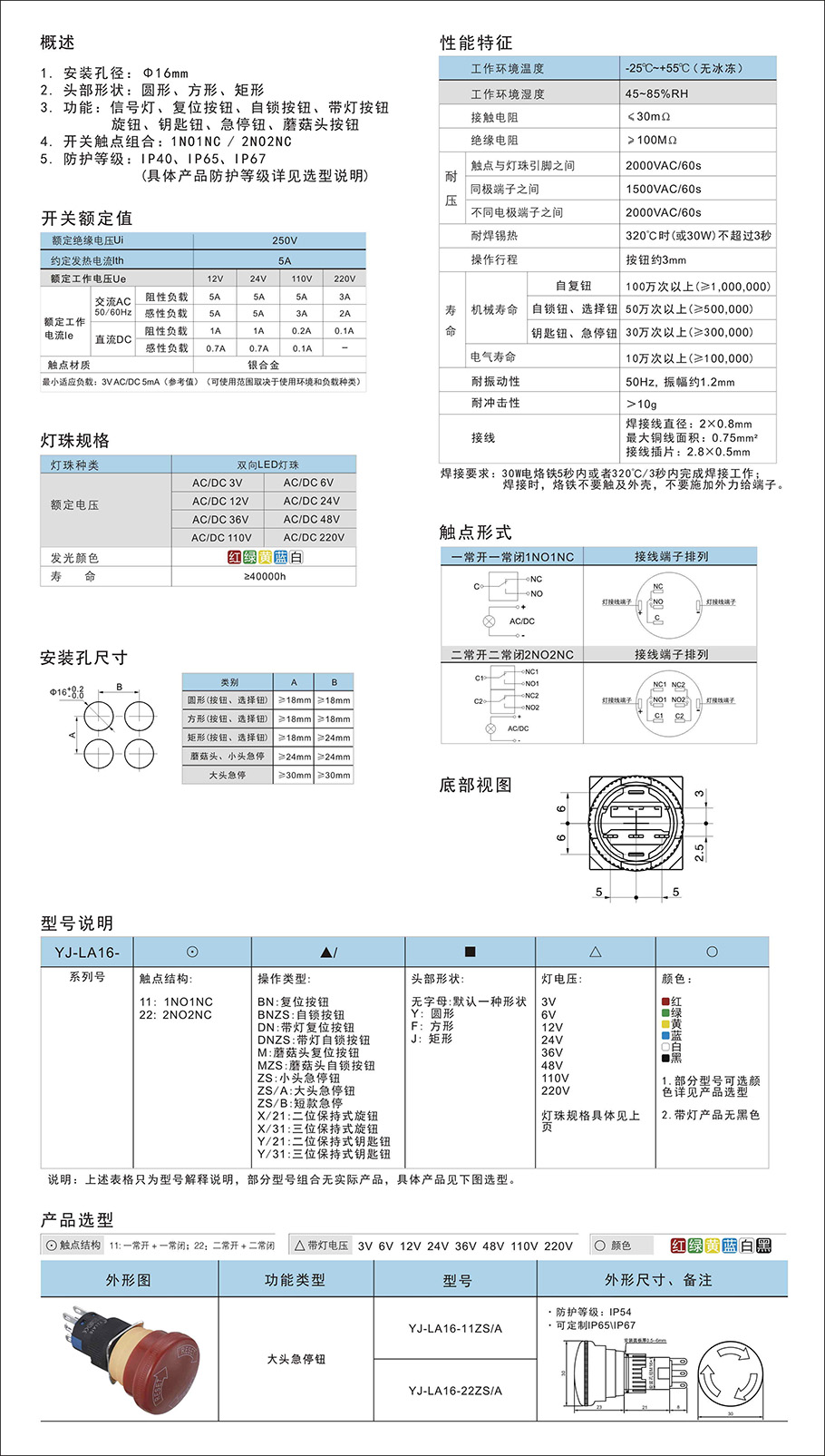 1. 作用:防止誤操作 2. 適用產(chǎn)品:YJ-LA16和YJ-F16系列的圓形和正方形按鈕