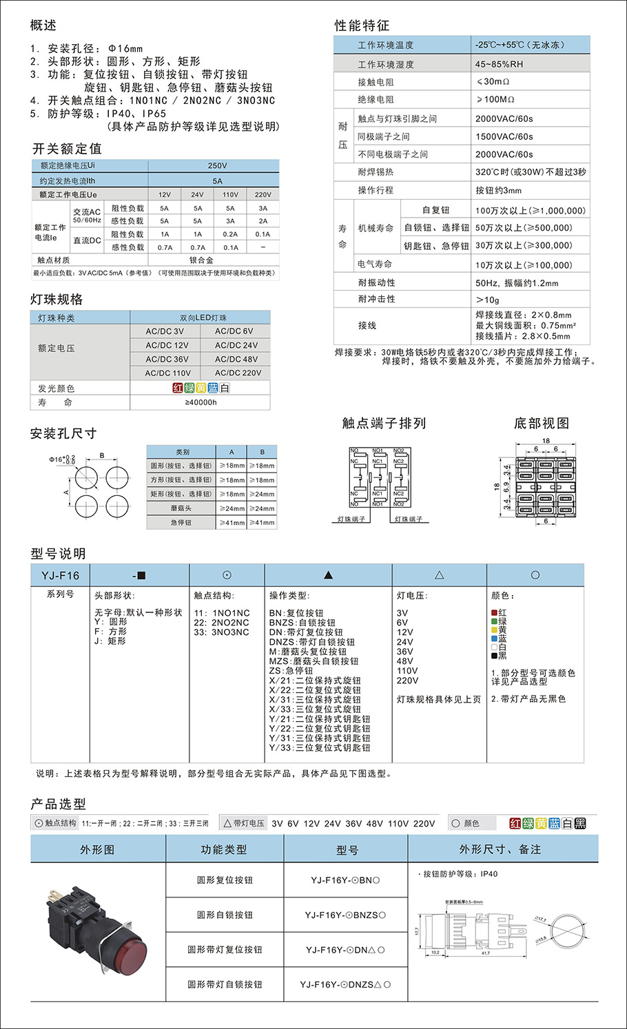 1. 作用:防止誤操作 2. 適用產(chǎn)品:YJ-LA16和YJ-F16系列的圓形和正方形按鈕