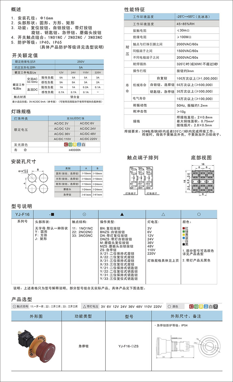 1. 作用:防止誤操作 2. 適用產(chǎn)品:YJ-LA16和YJ-F16系列的圓形和正方形按鈕